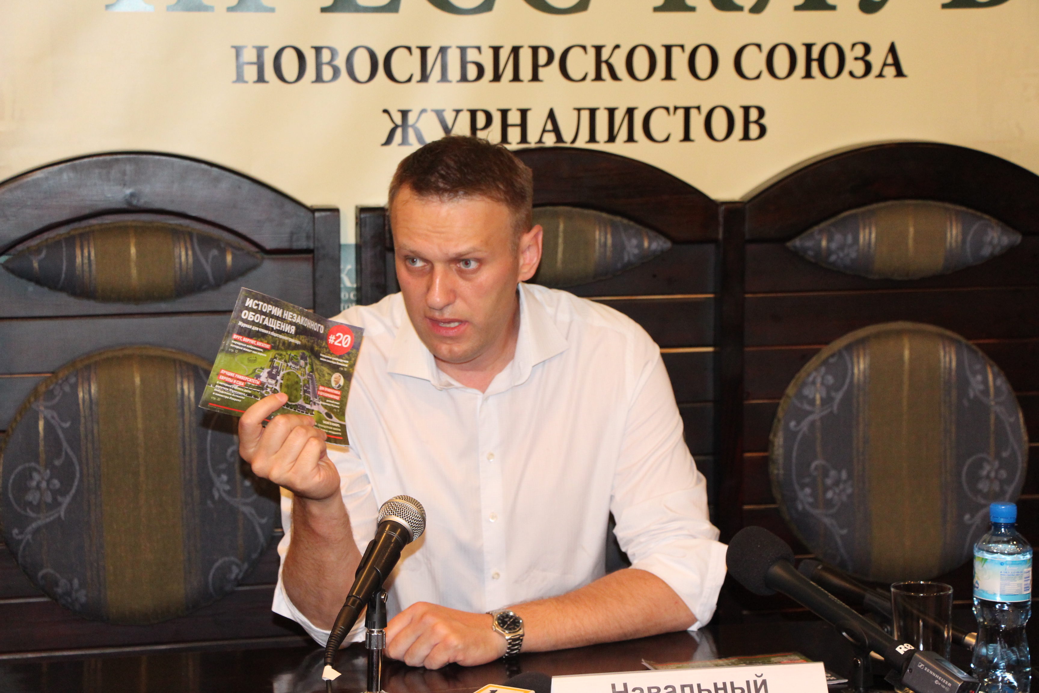 После пресс-конференции у дверей Союза журналистов гостя из Москвы встречали активисты Национально-освободительного движения криками о том, что Навальный – национал-предатель и должен убраться из страны. Навальный ответил: национальные предатели – это те люди, которые разворовывают бюджет и грабят жителей страны. Активистам НОД Навальный подарил брошюру Фонда по борьбе с коррупцией, в которой собраны факты о российских чиновниках: как и где они живут, как и где учатся и живут их дети