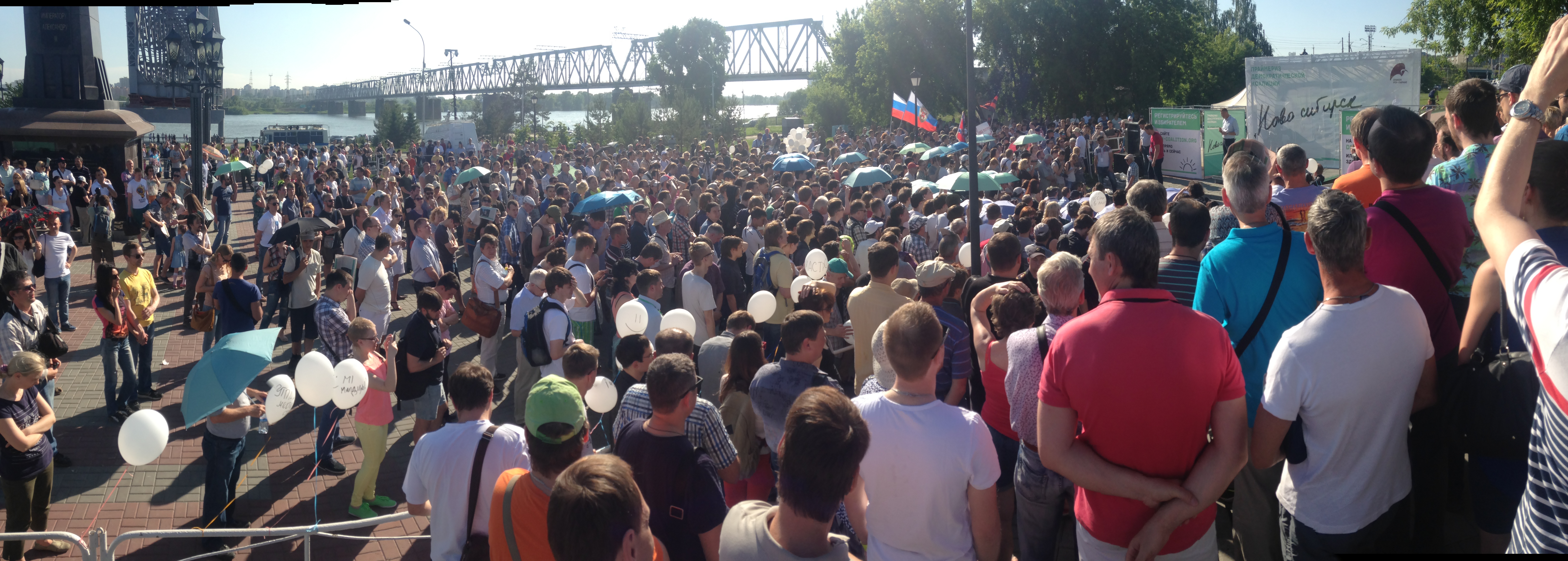 В середине дня на набережной Оби у памятника Александру III прошел митинг, в котором, по разным оценкам, приняли участие полторы-две тысячи человек. Навальный, в свежей голубой рубашке, говорил о необходимости борьбы с коррупцией и активизации гражданской активности. Проведению митинга мешали довольно агрессивно настроенные активисты НОД и местные казаки, однако серьезных инцидентов удалось избежать. Навальный пытался привлечь своих идеологических противников к публичной конструктивной дискуссии, однако из этого мало что получилось.