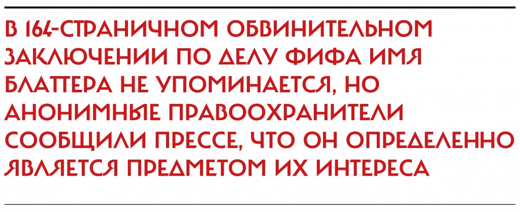В ноябре 2011-го, за два года до знакомства Блейзера с судьей Дири, к чиновнику ФИФА пришли двое следователей — один из ФБР, другой — из налогового ведомства — и предъявили ему доказательства его уклонения от налогов на миллионы долларов. Блейзер, который много лет был главным футбольным деятелем в США и вторым по рангу на Карибах, очевидно, нашел эти доказательства неопровержимыми, потому что согласился сотрудничать со следствием в обмен на снисхождение.
