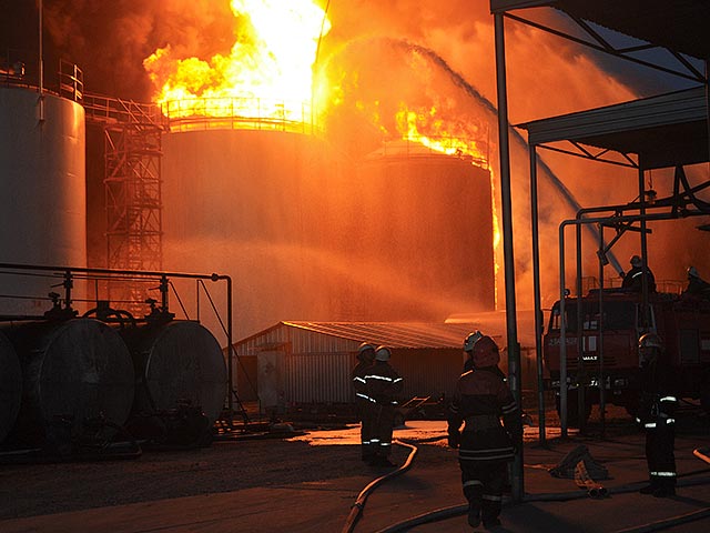 По словам спасателей, за резервуарами с горючим находятся газовые сети, которые тоже могут взорваться, сообщает телеканал ТСН. Арсен Аваков сообщил, что в зоне возгорания оказалась еще одна база нефтепродуктов KLO.