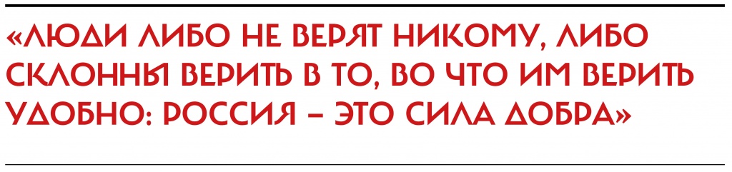 Впрочем, советник министра иностранных дел Латвии Виктор Макаров не соглашается с тем, что русскоязычными латвийцами легко манипулировать. Например, их взгляды на, скажем, украинский конфликт сильно отличаются от взглядов россиян — однозначно поддерживают Москву в этом вопросе лишь около 40 %. Но фактическое отсутствие альтернативы не может не влиять на умы. «Люди либо не верят никому, либо склонны верить в то, во что им верить удобно: Россия — это сила добра», — говорит Макаров.