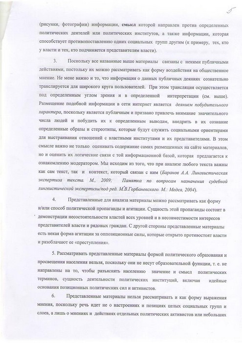 Также из выводов эксперта следует, что эти материалы можно рассматривать как форму или способ политической пропаганды и агитации, сущность которой состоит в демонстрации несостоятельности властей всех уровней и несовместимости интересов представителей власти и рядовых граждан.