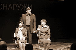 Текст устроен так, что он весь, от начала и до конца, создан на "античувстве", но даже при этом в спектакле есть светлые места. Медсестра (Анна Шуваева), например. В не самом лучшем спектакле у неё лучшая роль. Ко-гда я смотрел на её "танец", я вспомнил наш мимолётный прошлогодний разговор после одного из спектаклей. Анна Шуваева достойна того, чтобы кто-нибудь написал пьесу специально для неё.