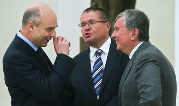 Антон Силуанов, Алексей Улюкаев и Игорь Сечин. Фото: moscow-post.com Комментарий редактора: В интервью Улюкаев также назвал причину обвала рубля осенью прошлого года. «Сначала у нас падают цены на нефть и затем — санкции, вместе они становятся причиной девальвации национальной валюты», — заявил министр. Он отметил, что в краткосрочной перспективе это создает много проблем, «но в долгосрочной перспективе для российских компаний это улучшает соотношение издержек производства — они становятся ниже».