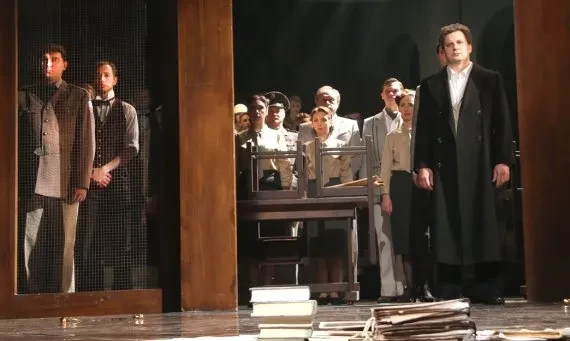 ...В «Нюрнберге» (см. «Новую», №114 от 10 октября 2014 года) цветет май 47-го, весенний воздух опьяняет жаждой жить и забывать; Бородин дает залу картину мира без прикрас, сосредоточенно ищет ответа на вечный вопрос: как превратить театр из очага иллюзий в очаг опыта, как не дать человеку превратиться в машину забвения. И финал «Нюрнберга», существенно в сравнении с кино переформулированный РАМТом, — своего рода образец высокой этики: «Мы — это то, во что мы верим, что защищаем. Даже если защищать это невозможно».