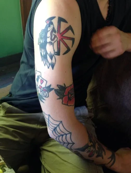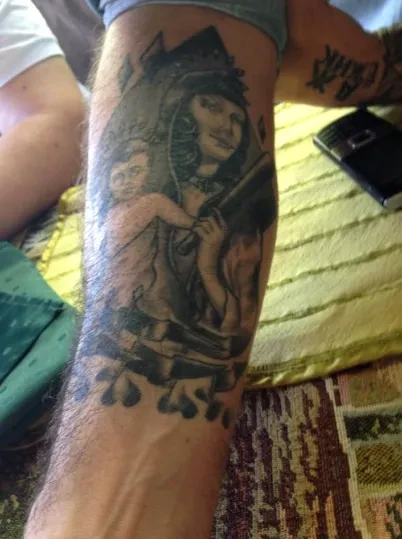 Татуировки Андреа еще более чудные: «римская фаша» («ничего общего с немецким фашизмом, это символ нашей империи») и Богородица с битой в руках. Это уже чисто фанатская тема: в последние годы перед отъездом в Россию в жизни Пальмери «главным был футбол». Он лидер ультрас Лукки — города под Флоренцией, где родился Пуччини. В России он болеет за «Спартак».