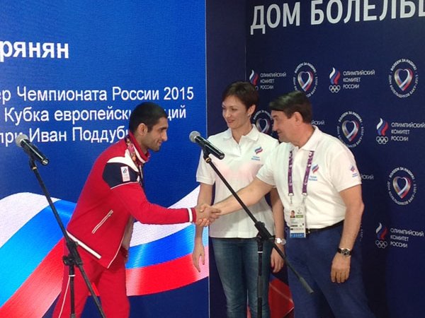Борцы греко-римского стиля Степан Марянян, Евгений Салеев и Ислам Магомедов выиграли бои в весовых категориях до 59, 80 и 98 кг соответственно. В Российском доме болельщиков им были вручены ювелирные нагрудные знаки отличия.