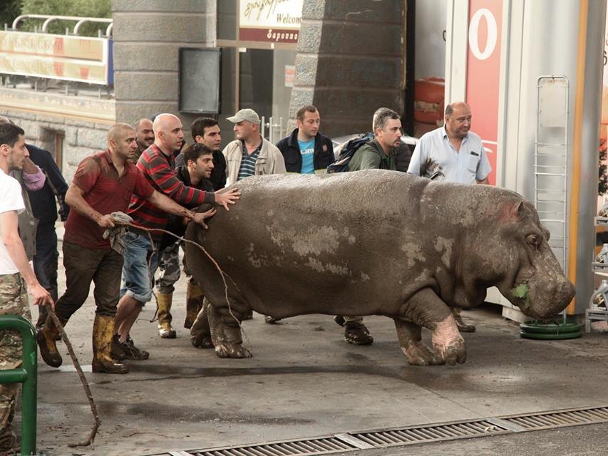 — Виолетта Волкова (@volkova_v) 14 июня 2015 В настоящее время удалось поймать сбежавшего крокодила, бегемота, некоторых львов и волков. Однако участники ловли животных в чрезвычайных ситуациях прибегают к их отстрелу. Так, были застрелены шесть волков, проникших на территорию детской больницы, а также двое львов. Почти половина царей зверей погибли при наводнении, такая же участь постигла и пингвинов, которые утонули.