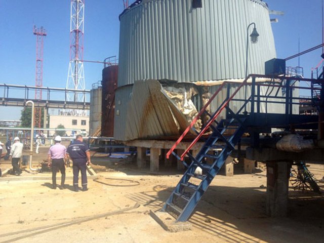 Как уточняет местный сайт "Телеграф", погиб 48-летний слесарь подрядной организации, который производил сварочные работы в резервуаре. Мужчину отбросило взрывной волной на несколько метров, и он умер до приезда скорой. Причиной смерти сварщика стало падение с высоты.