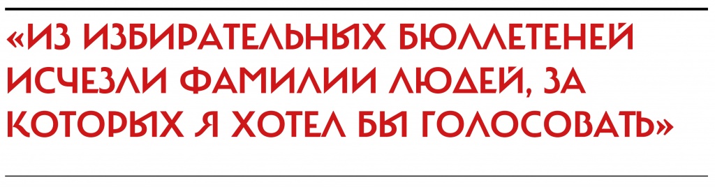 «Из избирательных бюллетеней исчезли фамилии людей, за которых я хотел бы голосовать. Именно поэтому многие перестали ходить на выборы. Есть и такой момент: мы, по всей видимости, уже давно забыли, что одна из самых важных функций законодательного органа — представительская. Но я не чувствую, что все эти спортсмены, олигархи, потомственные профессиональные политики представляют меня и мои интересы. Так что, я не буду никого просить поддержать именно меня. Но я хочу, чтобы все посмотрели на наших кандидатов и выбрали того, кто больше всех на вас похож. Вот такое заксобрание нам и необходимо!» — сказал NT один из участников праймериз, IT-предприниматель Сергей Бойко.