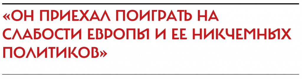 Напоследок Путин встречается со своим старым «другом Сильвио» — Сильвио Берлускони, политической мумией, потерявшей влияние даже в своей дышащей на ладан партии «Вперед, Италия!» Берлускони пришлось ждать Путина в римском аэропорту Фьюмичино дольше всех — почти полтора часа (таким образом, всего за один день Путин опоздал три раза). Они знакомы уже 14 лет и раньше хлопали друг друга по плечам и вместе проводили отпуск. Дружеские чувства заметны и сейчас: вот Сильвио заботливо помогает Владимиру, вышедшему из автомобиля, надеть пиджак. Но — невероятная вещь! — Путин и с Берлускони не выглядит умиротворенным — быстрая улыбка и снова напряженность в лице. Видимо, в этом и есть сегодняшний российский месседж Западу.