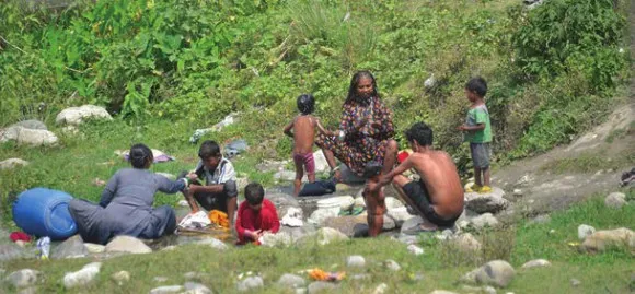Сразу за границами парка начинается территория штата Химачал-Прадеш. Вскоре мы сделали остановку на берегу небольшого притока Ямуны, в русле которого спасались от жары стада буйволов, а на берегу расположилась группа кочевников. Под раскаленными камнями в пойме реки зоологам удалось найти крохотных жабят и лягушат.