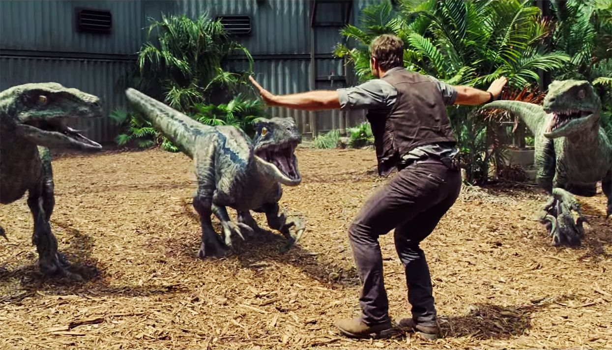 В фильме «Мир Юрского периода» есть сцена, в которой безоружный герой Криса Прэтта успокаивает трех динозавров.