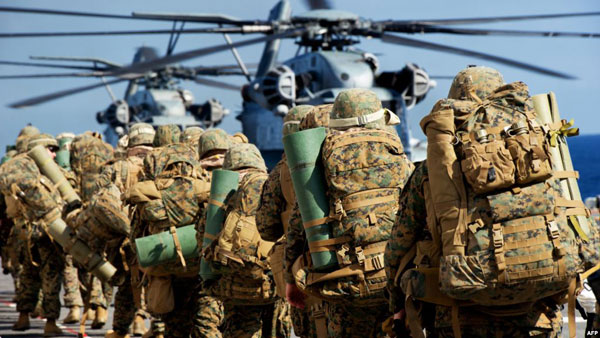 Морская пехота США. Фото: rferl.org Комментарий редактора: По данным СМИ, американских военных также перебросят на итальянский авианосец Cavour, а также корабли Франции, Испании и Нидерландов. При этом первые подразделения направят на европейские суда уже этой осенью – именно тогда военные примут участие в крупномасштабных учениях Trident Juncture.