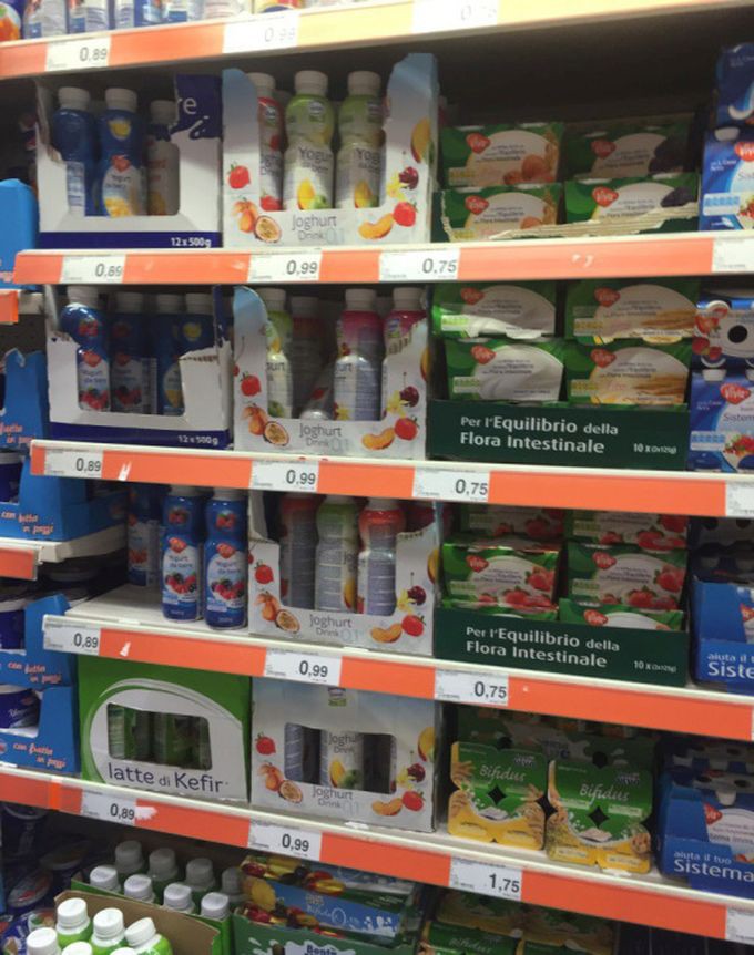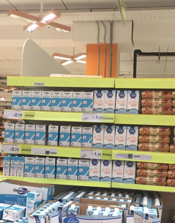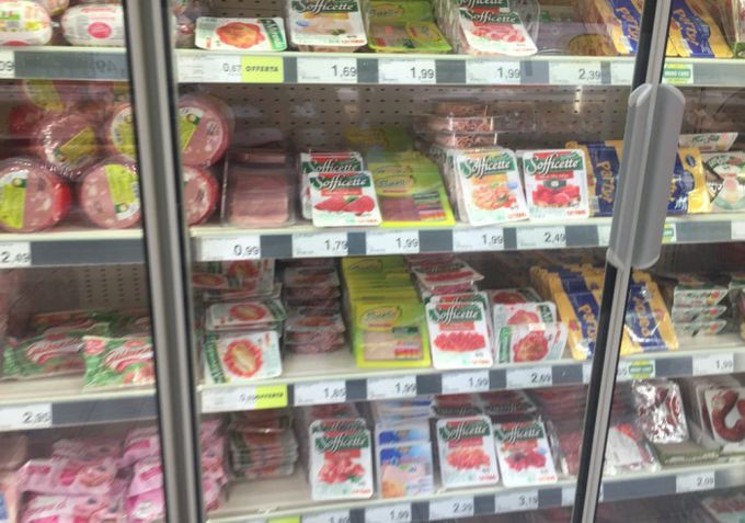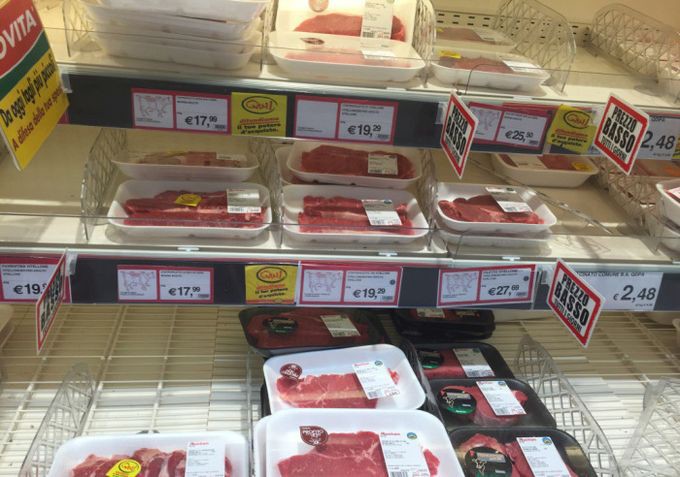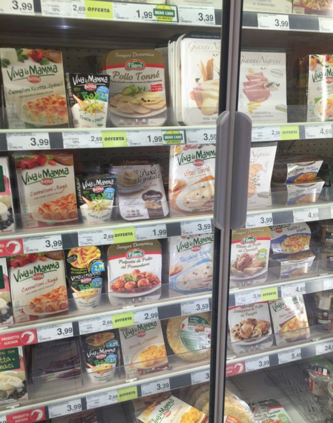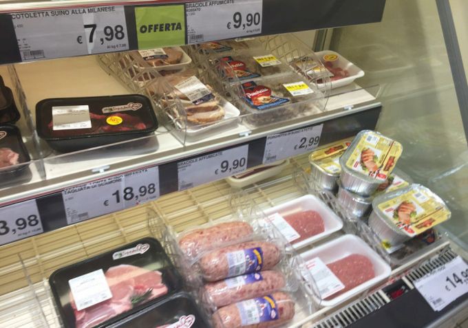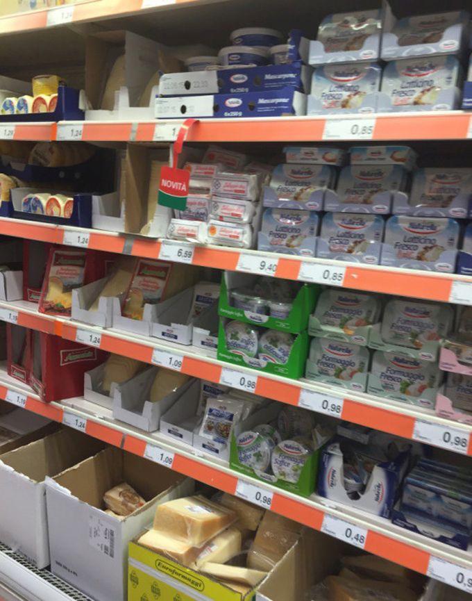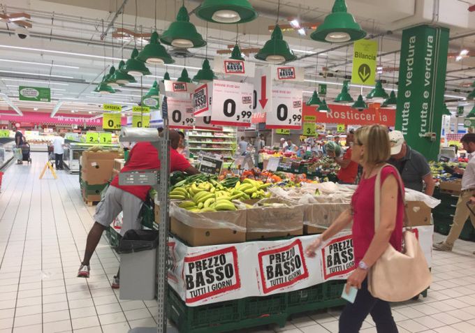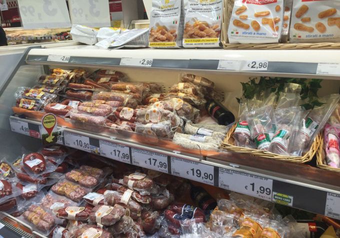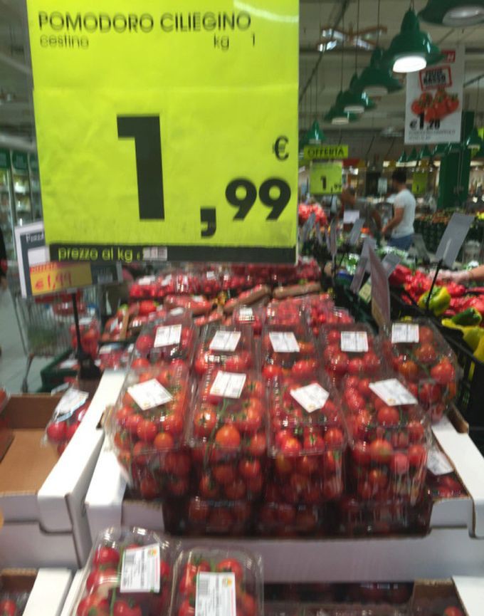 Предлагаю вашему вниманию цены на продукты питания из большого итальянского супермаркета и небольшого придорожного магазинчика. Цены действительны по состоянию на 13 июня сего года.