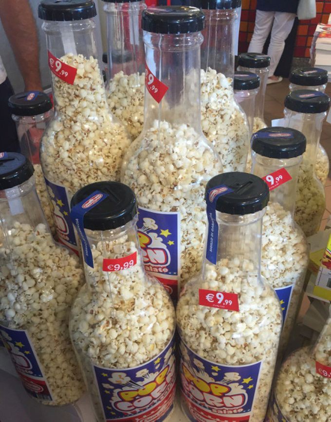 Попкорн. Бутылку потом можно использовать, как копилку.