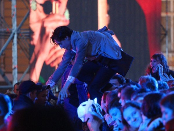 По их данным, посетители праздника оказались зажаты возле ограждений у сцены. Сотрудники полиции и ОМОНа помогают пострадавшим выбраться.