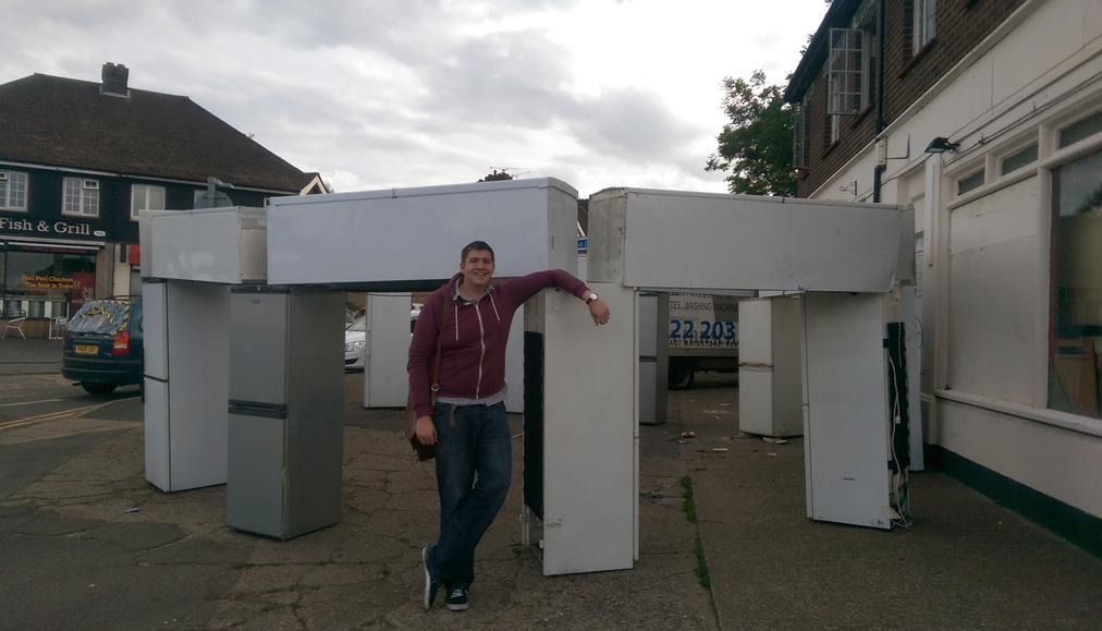 В городе Мейдстон (Великобритания) выросла своя копия Стоунхенджа — только не из каменных плит, а из старых холодильников. Его установили владельцы магазина техники для дома, расположенного неподалеку. На строительство конструкции у них ушло более 30 холодильников.