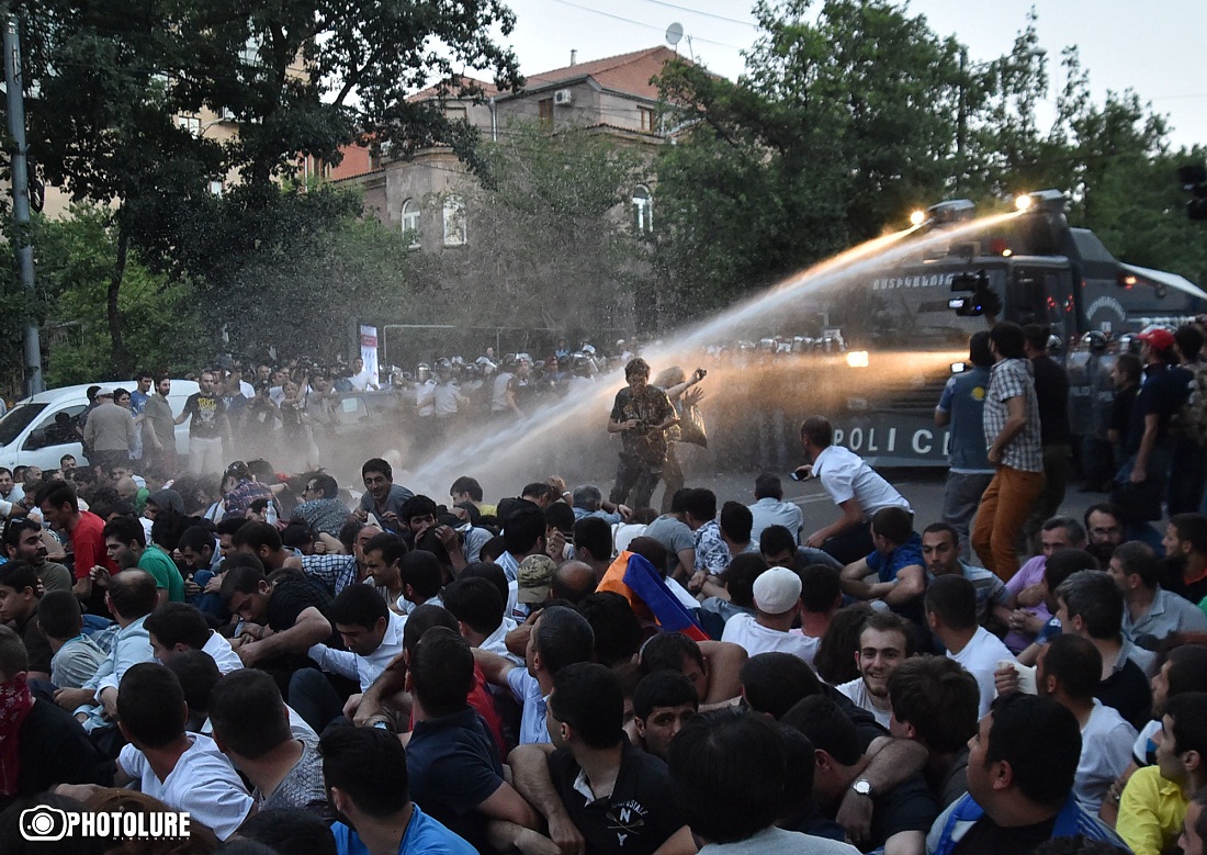 Акция протеста "Нет грабежу!" против подорожания электроэнергии началась в Ереване 19 июня. Вчера истек срок ультиматума, выдвинутого властям. Полиция использовала водометы. Пострадали несколько человек, в том числе – журналисты