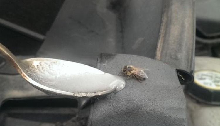 Сотрудники транспортной полиции графства Кембриджшир, Великобритания, во время осмотра патрульного автомобиля обнаружили уставшую пчелу. Полицейские решили поддержать насекомое, угостив его смесью воды с сахаром.