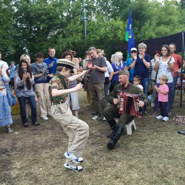 Илья Ахромеев — человек в военной форме и с гармонью — уверен, что визиту полиции в парк предшествовал очередной конфликт. «У православных переполнился сортир, вывезти не могут. Машину откачивающую мы не пускаем. Вот они и притащили еще одну кабинку, наши начали возмущаться, а там уж и полиция вмешалась», — рассказывает он. «Скажите, а почему вы в военной форме?» — осторожно спрашиваю я. «А это форма моего прадеда, — отвечает Ахромеев. — Он в 1942 году погиб. А сейчас пришло время ее достать, потому что это — война, мы действуем против захватчиков на нашей же земле».