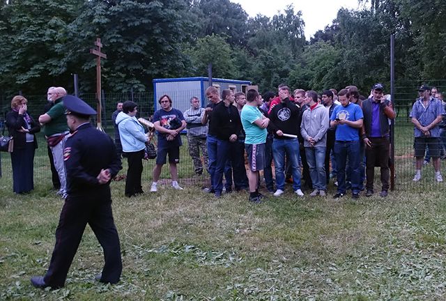 Парня зовут Петр, он студент одного из медицинских вузов столицы. Где-то в социальных сетях он увидел ролик о противостоянии вокруг храма и решил приехать. «Очень хочу подойти к этим противникам и сказать им в лицо: „Если бы не мое христианское смирение, я бы изрезал вас, я закопал бы вас живыми в землю“», — поделился он со мной. «Не лучшее начало для диалога», — засомневался я. «Не хочу с ними говорить, не хочу в глаза смотреть, — настаивал он. — На том видео женщина с ребенком матом кричит на православных. Паспорт у них отобрать и выслать в Европу, пусть там проповедуют веру свою безбожную». Я говорю ему, что среди тех людей — противников как такового строительства храма нет; они просто не хотят, чтобы он был в парке. «Люди себе шалаши строили, а Богу — здания в десять раз больше, — не сдавался православный студент. — Так что если себе Москву-Сити построили, то Богу нужно храмов размером с десять Москва-Сити».