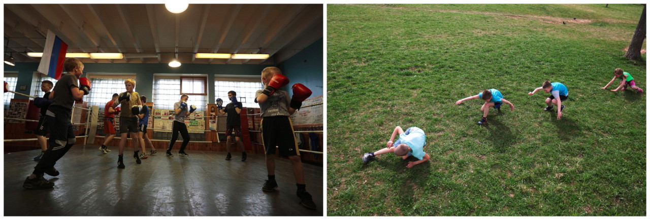 Слева: спортивный комплекс, где играют в гандбол, занимаются легкой атлетикой и боксом. Справа: занятия на воздухе в спортивной секции.Фото: Мария Плотникова для ТД «У рабочих отбирают жилье, которое строил еще Бадальянц, говорят, что будут переводить это жилье в коммерческое, что вот двадцать лет пожили и хватит. И никакого нового жилого фонда для работников никто строить не будет. А тех, кто живет, выселят, — перечисляет новые напасти Антропова. — А еще по итогам 2014-го руководство “Базэлемента” впервые нарушило Трудовой договор, не проиндексировав зарплату… Мы бы выступили, да кто нас услышит». Светлана Антропова опускает голову и молчит. Выступить профсоюз зимой этого года пытался. Протестуя против решения руководства проиндексировать не зарплату, как положено по Трудовому договору, а необязательную к выплате премию, одиннадцать митингующих вышли с плакатами: «Требуем индексации на тарифы и оклады!», «Не требуем ничего лишнего — выполните обещания!», «Индексация предмет для переговоров, а не для ультиматума!». А потом к протестующим вышли прокурор из Бокситогорска, представитель Трудовой инспекции и сообщили, что они на стороне директора. Рекомендовали разойтись по-тихому.