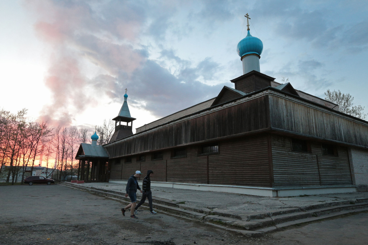 Здание бывшего кинотеатра, в 1990-е отданное церкви. Сейчас в городе нет ни одного кинотеатра: все, кто хотят посмотреть кино на большом экране, ездят в Тихвин.Фото: Мария Плотникова для ТД