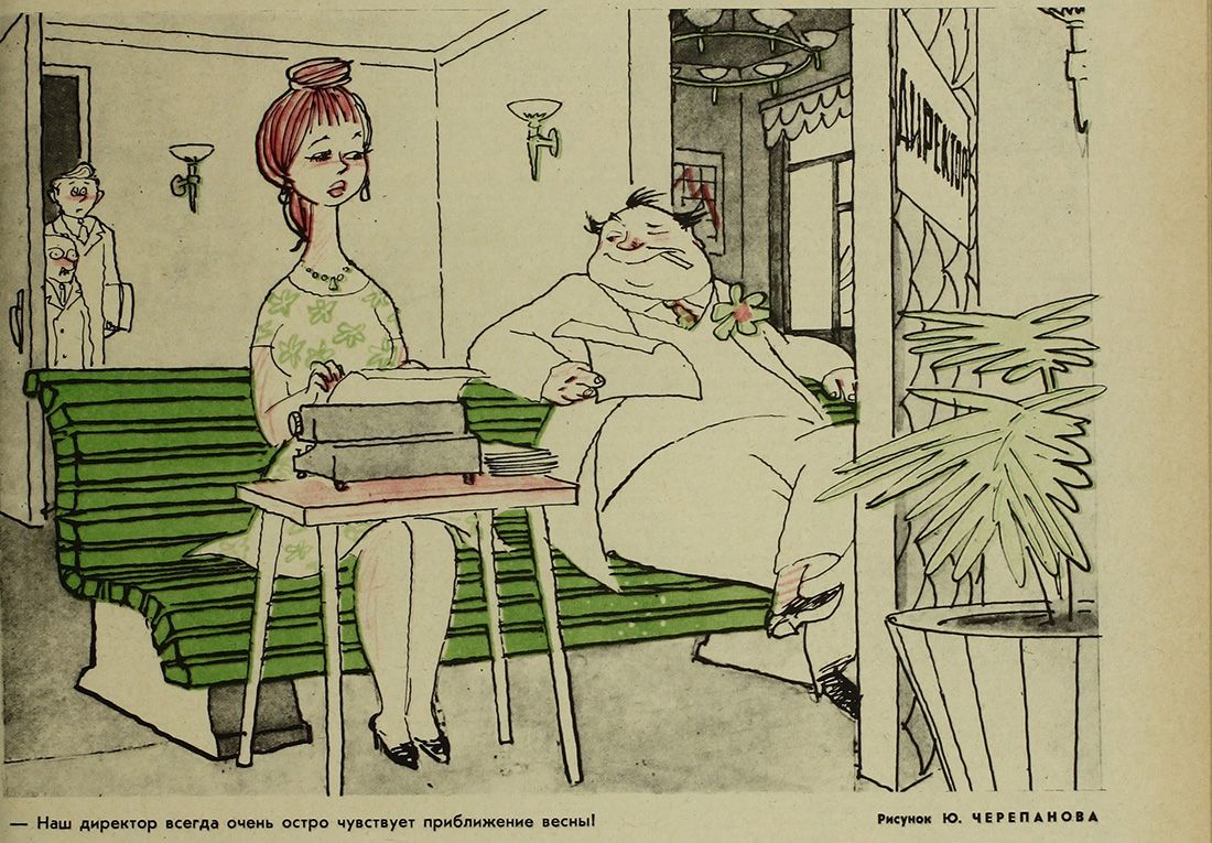«Медуза» вспоминает, как домогательства (в первую очередь на работе) изображали в советские годы — на страницах сатирического журнала «Крокодил».