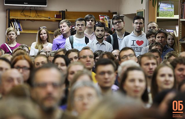 Присоединяйтесь к нам в социальных сетях — у нас есть группа «Открытая библиотека» «Вконтакте», в фейсбуке, можно подписаться на рассылку на нашем сайте open-lib.ru. Кроме того, должен поблагодарить наших постоянных друзей и информационных партнеров — портал «Медуза», который ведет прямую трансляцию. У них же потом будут выложены расшифровки и видео.