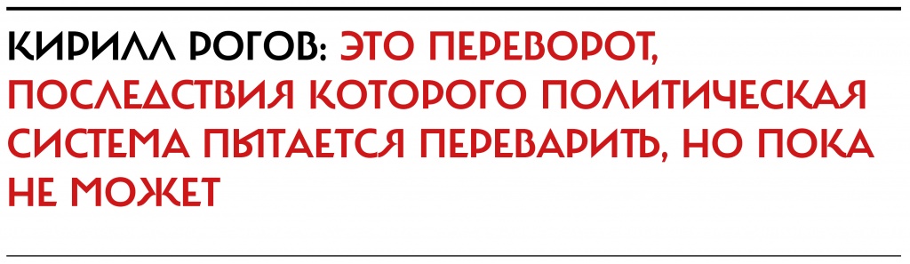 Рогов: Ситуация определяется двумя фундаментальными вещами. Это переворот, последствия которого политическая система пытается переварить, но пока не может. Переворот был инициативой узкой группы лиц, они достигли своей цели по резкому изменению баланса внутри элит, но есть серьезные сложности. Эта группа лиц не принята западными лидерами в качестве ответственного переговорщика. Их не приняли в новом качестве — в качестве хунты, с которой надо разговаривать на ее языке и отвечать на ее запросы. Они будут пытаться довести логику переворота до конца, и это дестабилизирует систему. И вторая вещь: мы должны помнить, что в этом году исполняется 16 лет, как Владимир Путин находится в офисе. Это этап политической дряхлости для любого лидера. Здесь нет никаких вопросов о возможных будущих реформах, о запуске новой системы. Возможна только попытка избежать неизбежного — собственного ухода. Крах неизбежен, и усилия, предпринимаемые для того, чтобы его избежать, обычно этот крах и готовят.