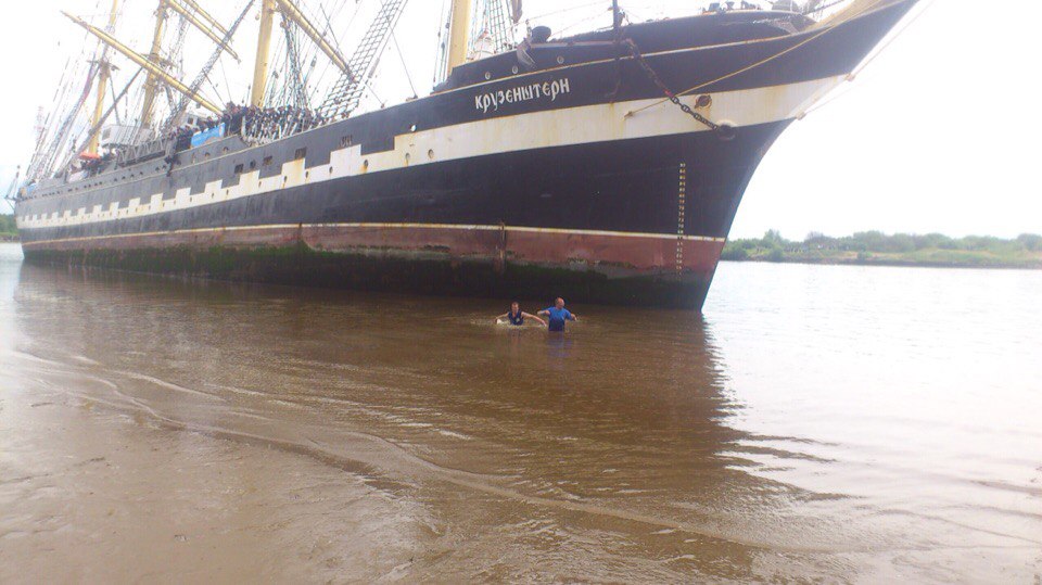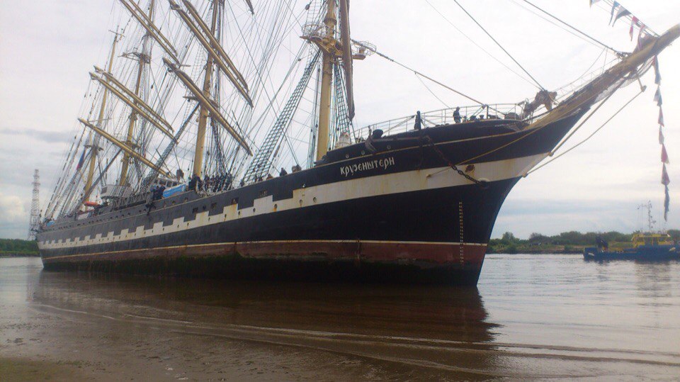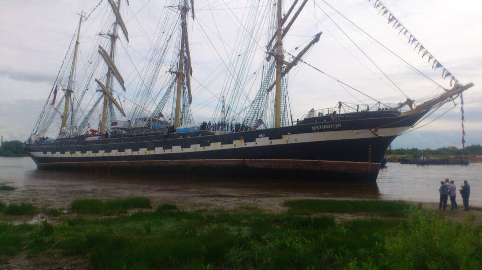 Барк "Крузенштерн" сел на мель в Архангельске