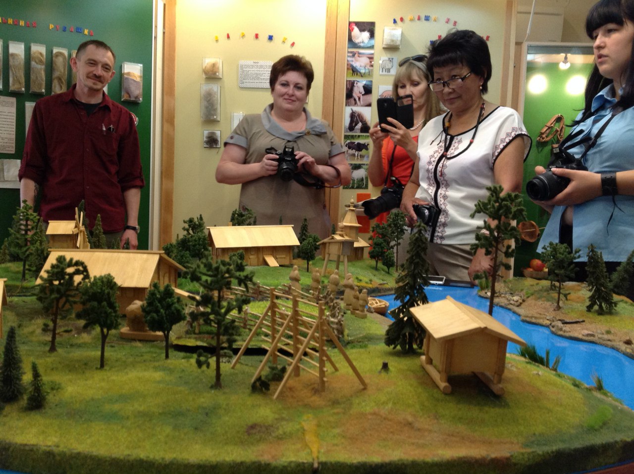 В Петрозаводске «стажировщики» посетили четыре площадки, связанные с ремеслами, которыми мы у себя тихо, а кто и громко – гордимся. В Национальном музее Карелии открыта выставка «Натуральное хозяйство», там чудесная Катя Логвиненко не только поведает обо всех предметах в витринах, не только «поревет белугой» (аудио-система со звуками установлена – поди-ка, угадай, кто как из промысловых зверей «разговаривает»), но и усадит за круглый стол, на котором вырастет лес, заколосится поле, взрастет огород, заживут весело и сытно жители, застучат топорами, построят добротную сельскую жизнь. Там все можно брать в руки, крутить перед носом, там множество загадок – а толокно из этого злака или из этого? а какое событие происходит на Петров день, а что по традиции нужно сделать на Ильин? а как на ощупь свиная кожа? а как эта травинка превращается в льняную тряпочку?