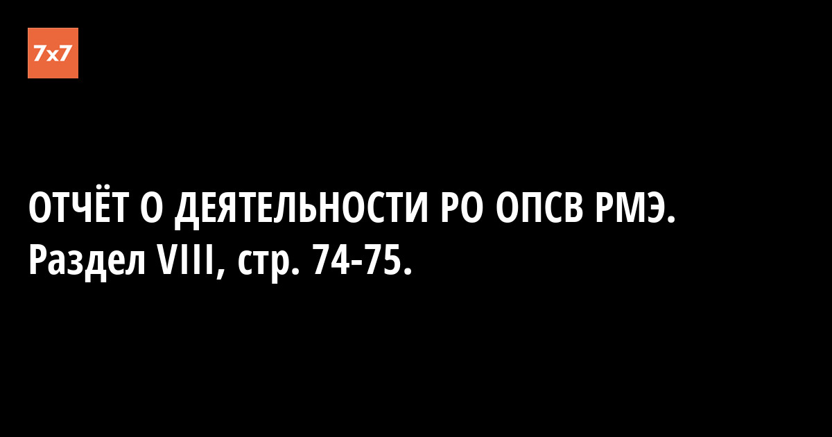 ОТЧЁТ О ДЕЯТЕЛЬНОСТИ РО ОПСВ РМЭ. Раздел VIII, стр. 74-75.
