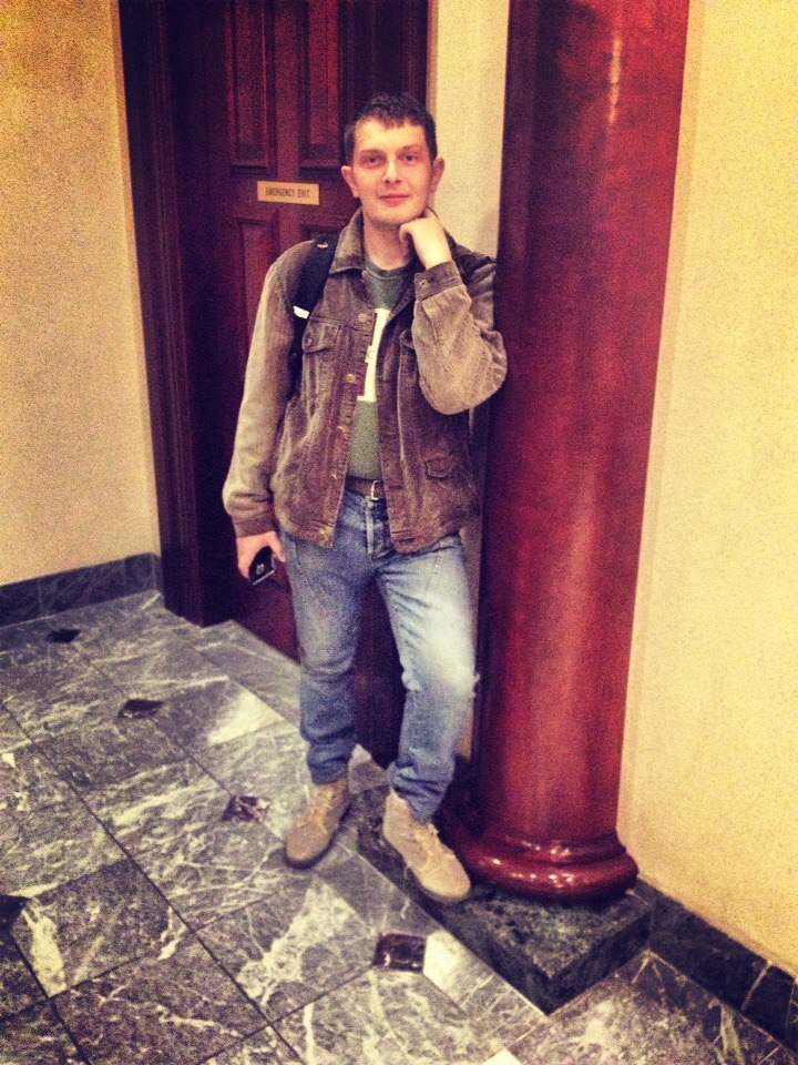 Однажды, в день инаугурации президента, мы с другом шли по Тверскому бульвару. Просто шли, ничего не выкрикивали, но тут меня задержали, посадили в автозак и вместе с другими такими же увезли в ОВД в Медведково. У нас требовали документы, а я всем задержанным объяснял, что арест не законен, не предъявлено никакого обвинения, что они могут ничего о себе не рассказывать — это закон о защите личной информации. Полицейские это заметили, отвели меня в другую комнату, обыскали, нашли копию паспорта и записали данные.