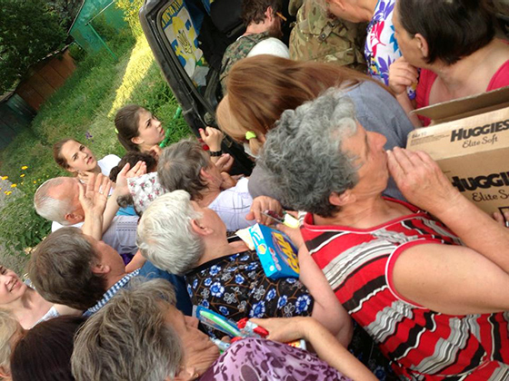 © Юрий Марченко Раздача «гуманитарки» в Марьинке Десант