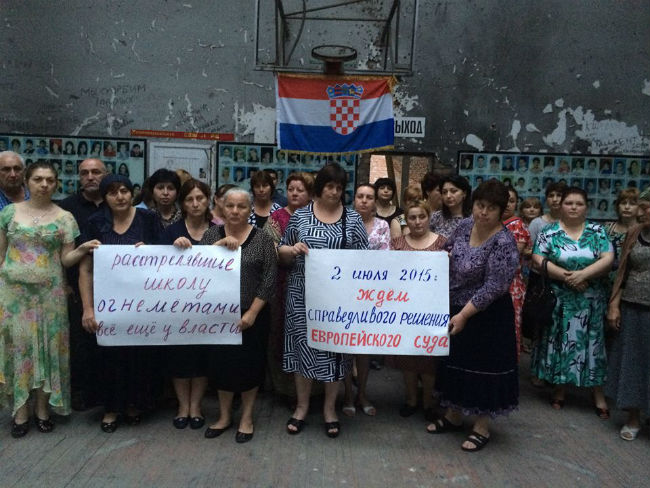 Пикет в бесланской школе накануне решения ЕСПЧ. Фото из фейсбука Эллы Кесаевой