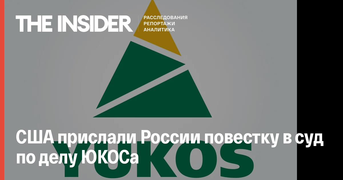Согласно отчету о статусе дела, поданному в суд округа Колумбия (Вашингтон) 1 июля, посольство США в Москве передало пакет судебных документов в Москву 22 июня. Речь идет о ходатайстве Hulley Enterprises, Yukos Universal и Veteran Petroleum (экс-акционеры ЮКОСа, выигравшие в Гааге компенсацию в $50 млрд. плюс штрафные проценты) о признании и принудительном исполнении арбитражного решения в США.