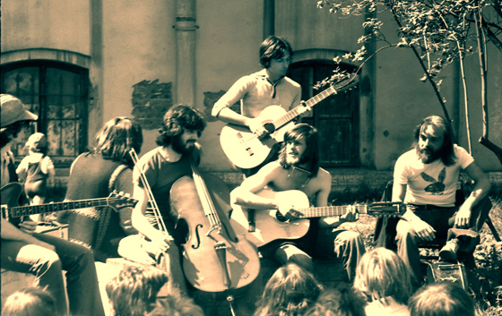 Группа «Аквариум» была основана в июле 1972 года Борисом Гребенщиковым и Джорджем Гуницким, который, согласно легенде, позаимствовал название для группы у пивбара на Будапештской улице. Первые годы коллектив существовал в демо-режиме — БГ писал песни, а группа репетировала, но редко выступала, поскольку было негде. Регулярная концертная деятельность «Аквариума» началась только в 1976-м. Поэтому первыми открытыми выступлениями группы можно считать репетиции у Инженерного замка — в те годы находившийся в запущенном состоянии дворец Павла I напротив Летнего сада был тусовочным местом ленинградских хиппи, где происходили показы театральных постановок, в которых участвовали и члены «Аквариума». От этого периода осталось только несколько фотографий Вилли Усова, где запечатлены посиделки с гитарами.