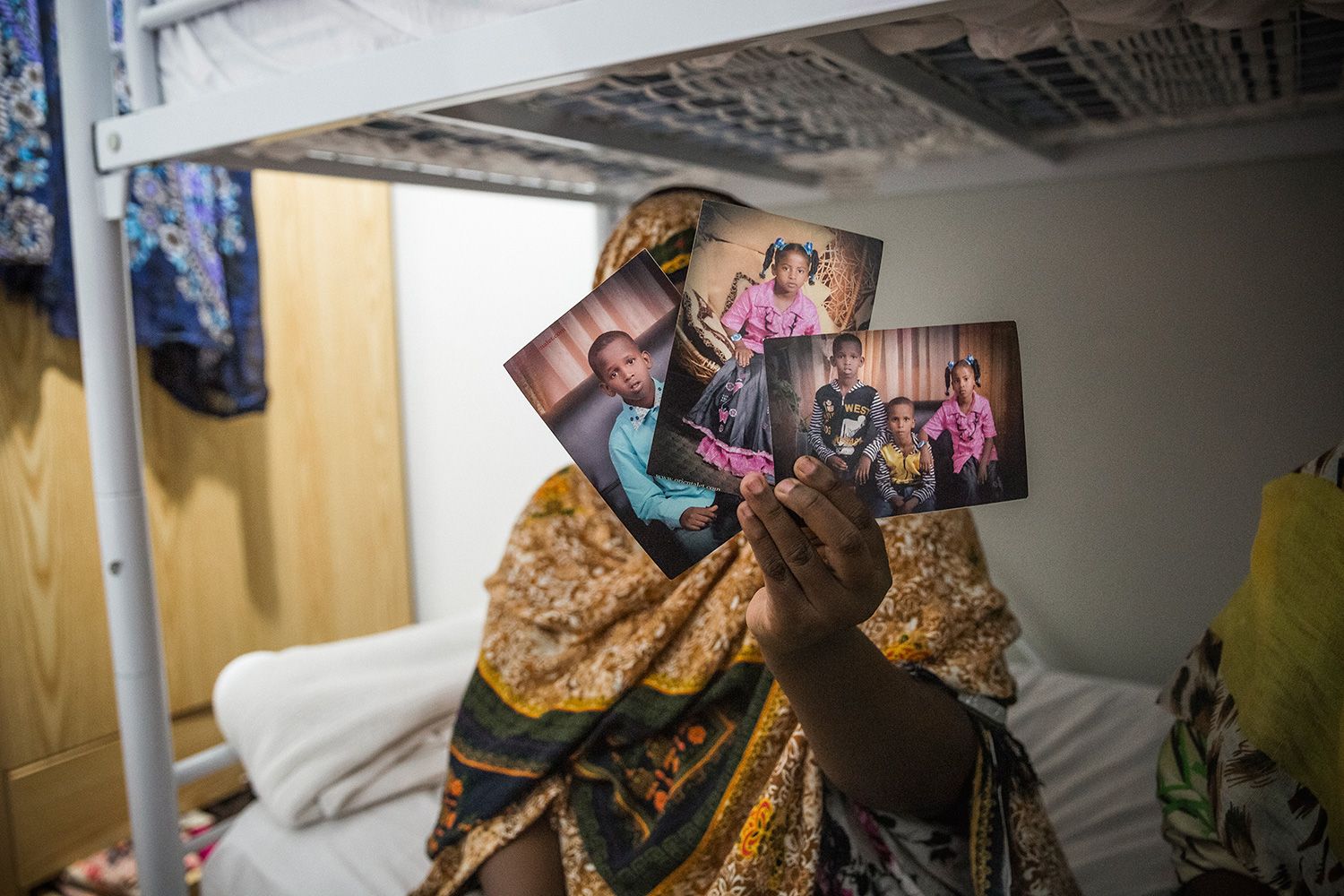 28-летняя Сабах показывает фотографии трех детей, с которыми она была насильно разлучена во время побега от террористической группировки Аль-Шабаб из Сомали. Сабах не знает, удастся ли ей когда-нибудь увидеть своих детей снова.