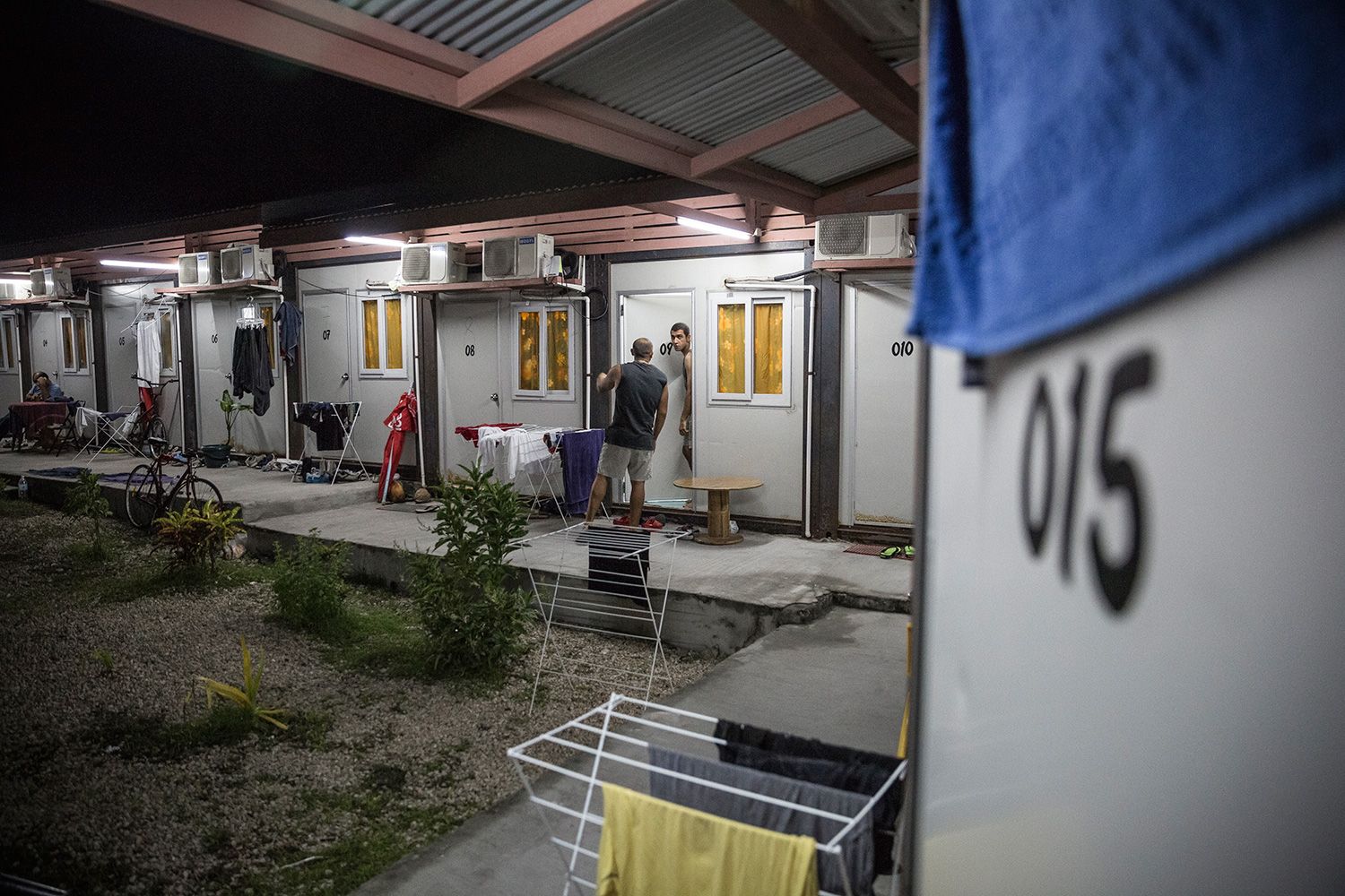 В лагере для беженцев в районе Анибаре, Науру, живут холостяки и семейные пары без детей. В контейнерах два на четыре метра помещается лишь двухъярусная кровать, туалет и мини-холодильник. По замыслу австралийского правительства, беженцы проведут в таких лагерях всю жизнь.