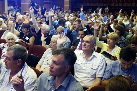 Фото: Россия. Москва. 5 июля 2015. Голосование во время съезда партии "Республиканская партия России — Партия народной свободы" (РПР-ПАРНАС). Артем Коротаев/ТАСС