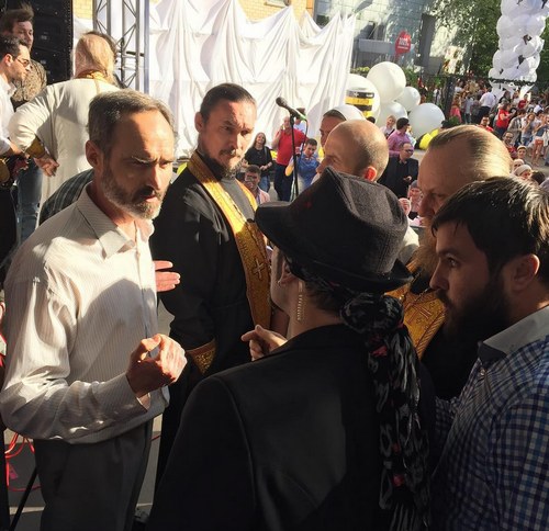 Настоятель Благовещенского храма в Петровском парке протоиерей Димитрий Смирнов, ворвавшийся с «сопровождением» на праздник «Серебряного дождя» и устроивший там потасовку, всегда выступал в том духе, что пацифизм — не метод. Призывал бить стекла у «сектантов», например. Можно было счесть это некоторой несдержанностью. Или риторическим преувеличением: сказал же он в связи с терактом 11 сентября, что на самолетах летать незачем. Но нападение на концерт «Серебряного дождя» — уже не риторическое упражнение.