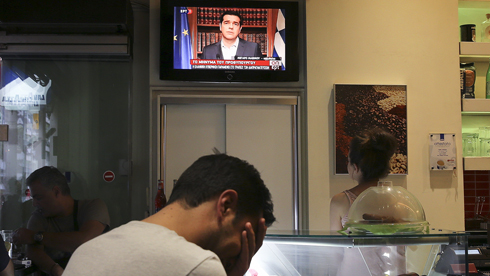 Посетители кофейни слушают премьера Ципраса, Афины, 1 июля 2015 года