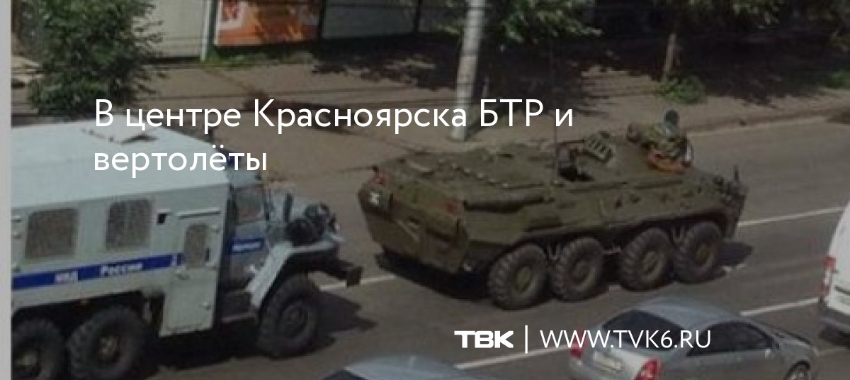 В центре Красноярска проходят масштабные учения. На дорогах города можно увидеть БТР, а в небе - вертолёты.