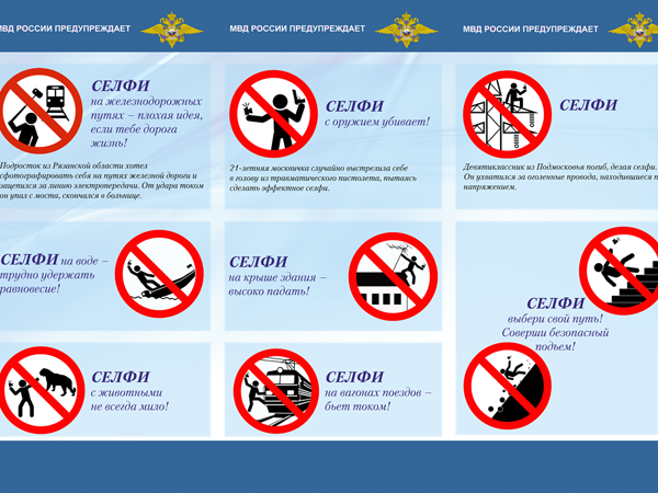 Ранее сегодня МВД России презентовало памятку об опасности селфи. В буклете, в частности, говорится: «Селфи на вагонах поездов — бьет током!».