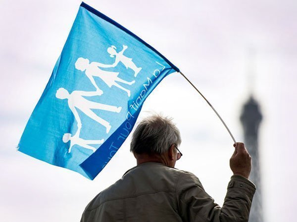 Комментарий редактора: Несколько часов спустя после опубликования флага, блогеры уличили московское отделение «Единой России» в плагиате изображения с флага французских консерваторов-противников однополых браков La Manif Pour Tous. Отмечалось, что российские политики просто добавили изображение еще одного ребенка между двумя родителями и немного растянули изображение по ширине.