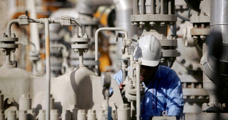Рабочий на нефтехимическом комплексе в Ассалуйе. Иран
