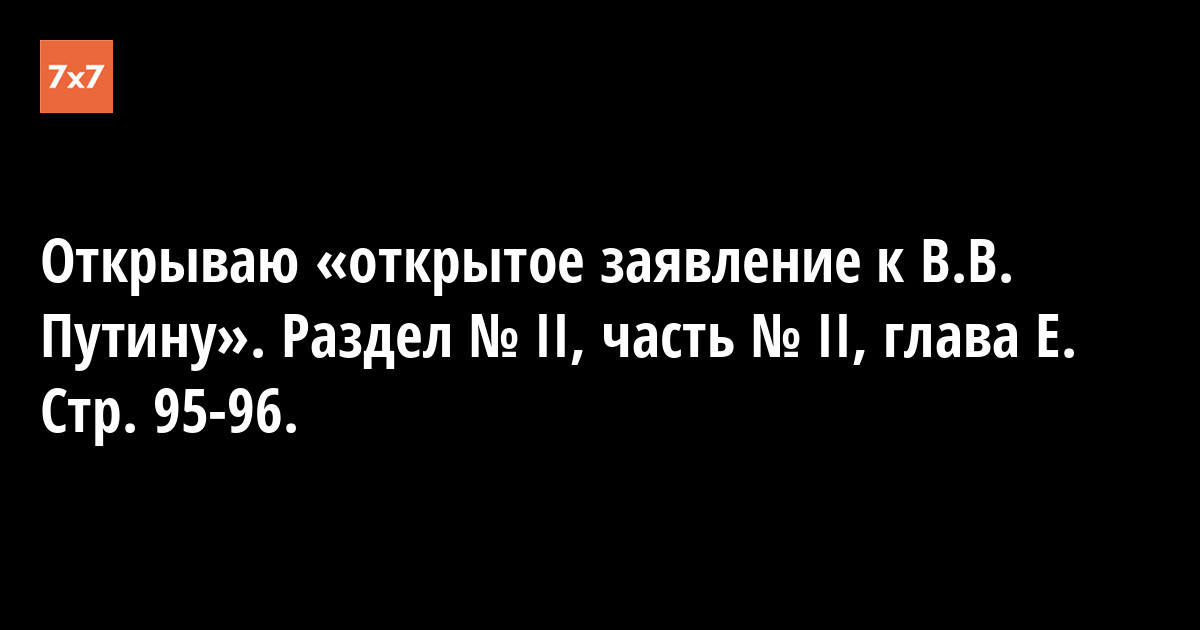 Открываю «открытое заявление к В.В. Путину». Раздел № II, часть № II, глава Е. Стр. 95-96.