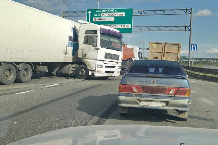 На 71 километре внутреннего кольца КАД столкнулись четыре грузовых автомобиля, пишет «БалтИнфо» со ссылкой на ГИБДД. Из-за аварии на дороге скопилась пробка.